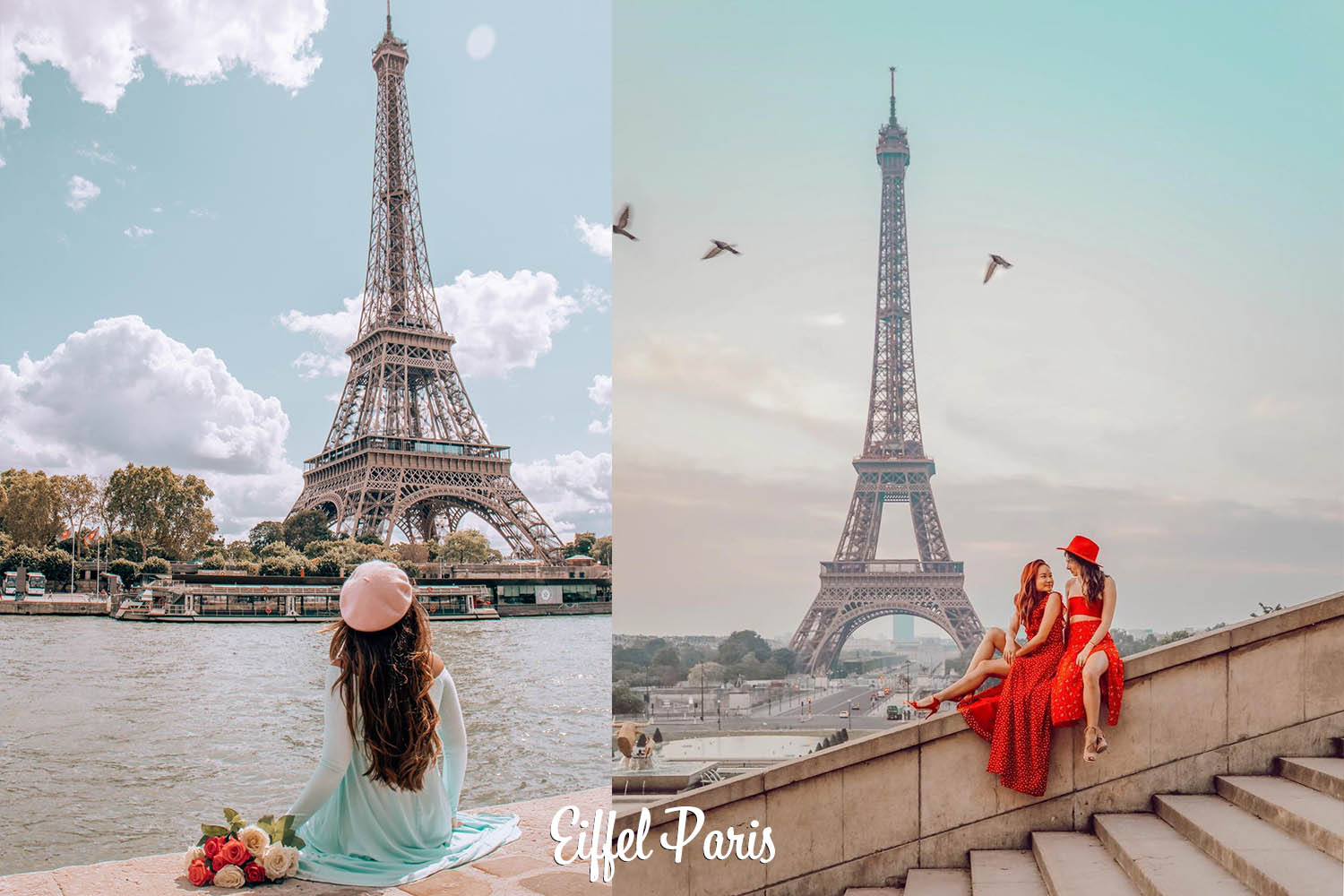 - Tháp Eiffel: Công trình vĩ đại của hai thế kỷ trước, đến nay vẫn còn là biểu tượng của Paris, là niềm tự hào của người Pháp (chụp ảnh bên ngoài ).